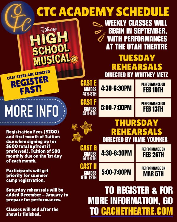 CTC is Cache Valley's longest running Community Theater. We produce one straight play every season. From comedy to classics, there is something for everyone.